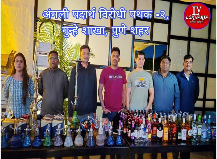 पुणे : अंमली पदार्थ विरोधी पथक २, गुन्हे शाखा पुणे शहर यांनी कोंबिंग ऑपरेशनदरम्यान विमाननगर परिसरातील एका हुक्का पार्लरवर धडक कारवाई करत अवैध धंद्यांचा पर्दाफाश केला. या कारवाईत एकूण १,४७,५५० रुपयांचे हुक्का साहित्य व विदेशी दारू जप्त करण्यात आली आहे.