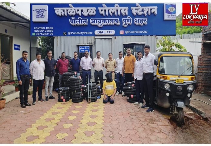 पुणे – काळेपडळ पोलीस स्टेशनच्या तपास पथकाकडून दुचाकी टायर चोरी करणाऱ्या सराईत चोरट्याला अटक करण्यात आली आहे. या कारवाईत तब्बल, ३लाख ५३हजार १७५ किंमतीचे नवीन दुचाकी टायर व गुन्ह्यात वापरलेली रिक्षा आणि कटावणी जप्त करण्यात आली आहे.